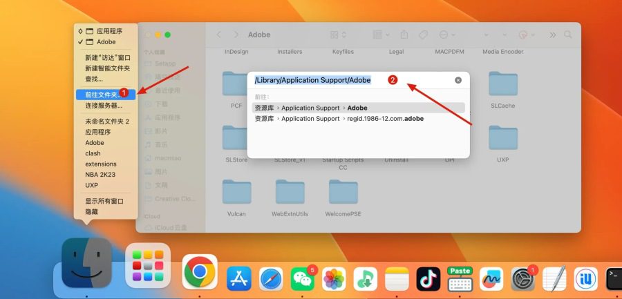 底部程序坞 Finder(访达)--右键 前往文件夹 输入下方路径