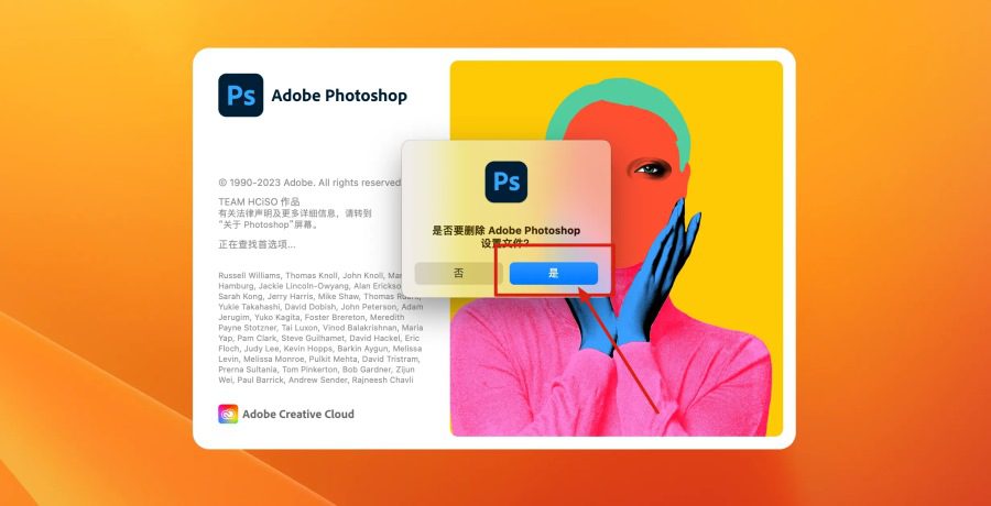 3、在出现“删除 Adobe Photoshop 设置文件?”的窗口中,单击 是。