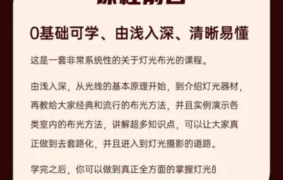 由浅入深,从光线的基本原理开始,到介绍灯光器材,