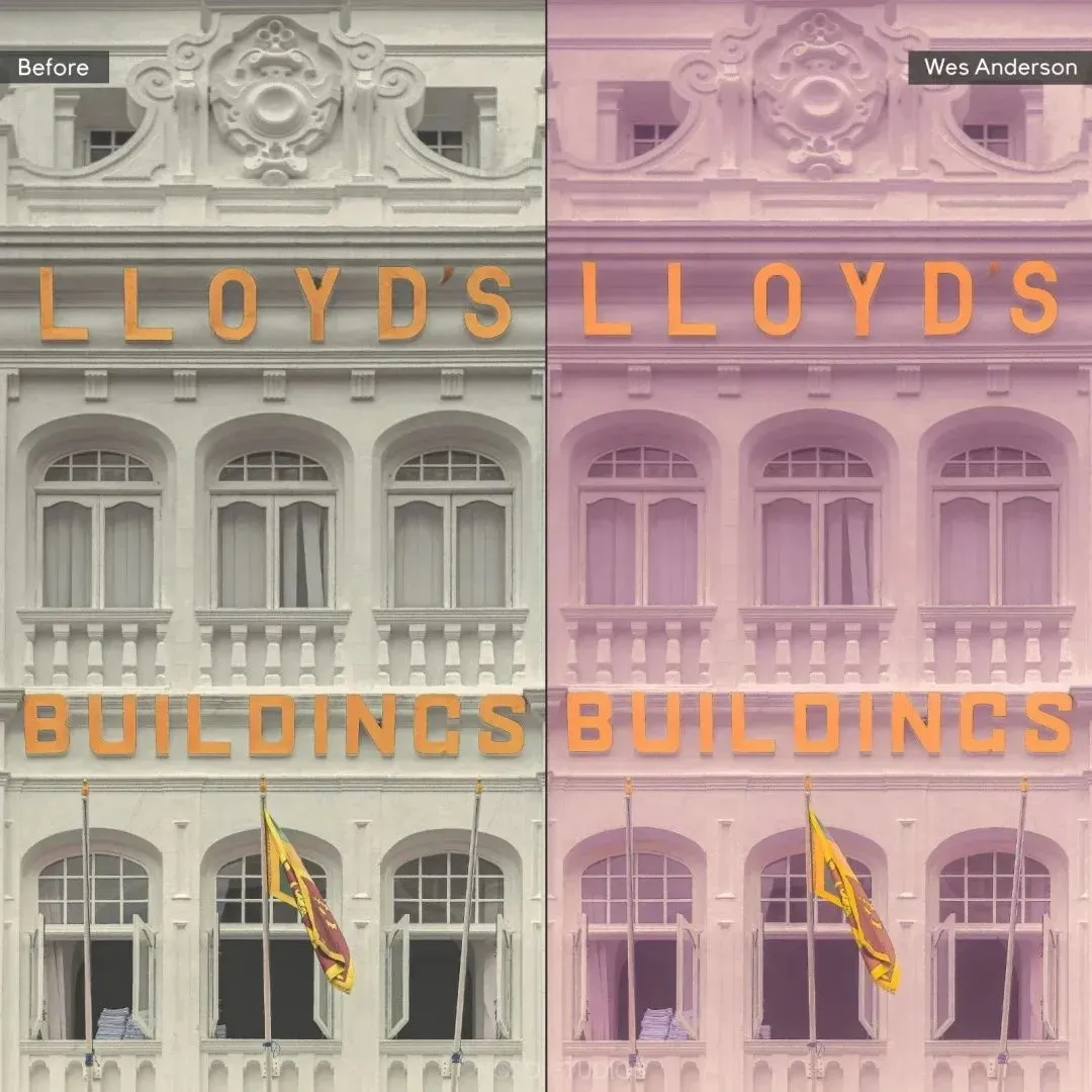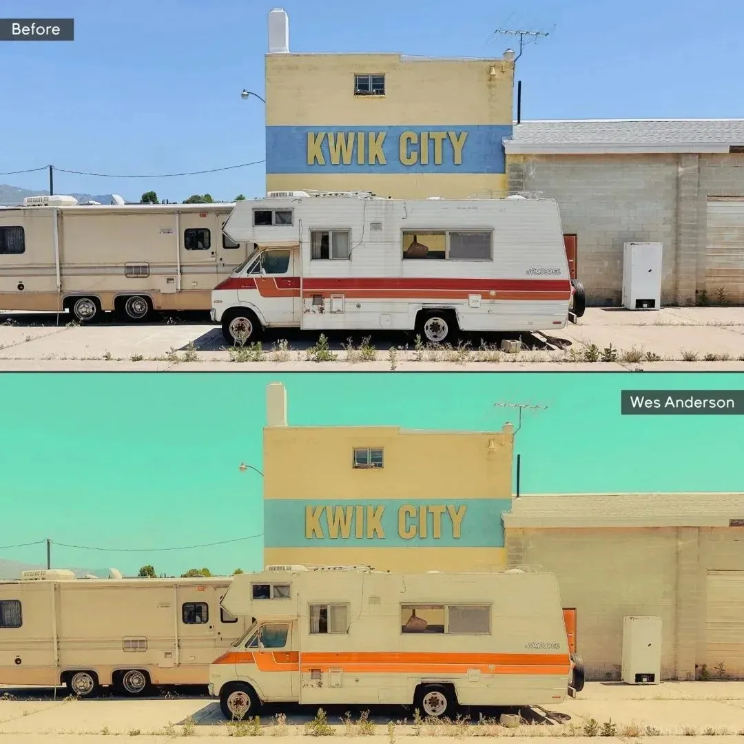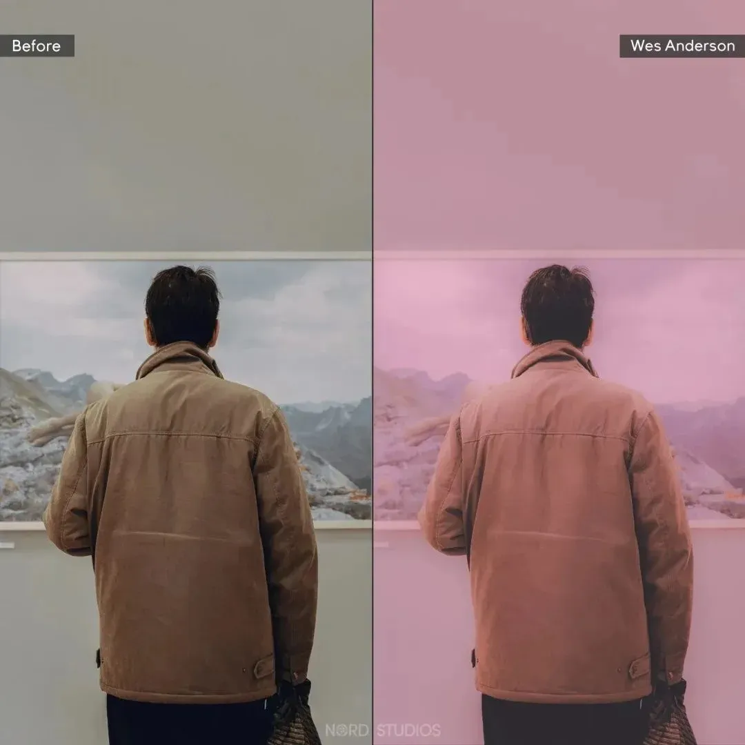 里面有11个预设,是根据他最受欢迎的作品的调色板设计的;3x《小行星城》、3x《布达佩斯大酒店》和3x《月升王国》,以及另外两个模仿韦斯·安德森独特风格的电影色彩等级。