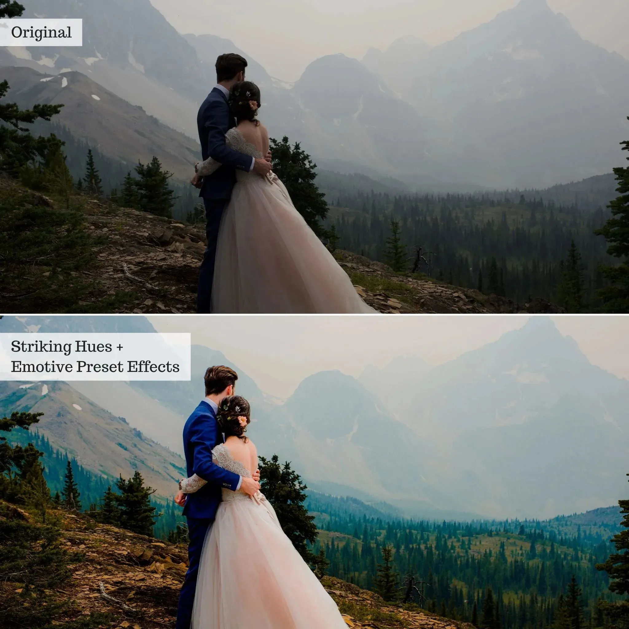 使用我们的一键式预设,在不牺牲颜色或时间的情况下绘制深度和增强情感,然后使用我们的AI驱动的工具包,只需几次快速点击即可柔化皮肤、加深背景和重振天空。