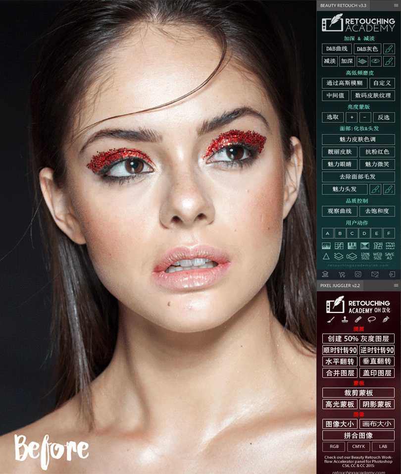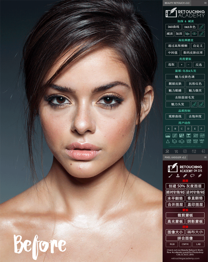 Beauty Retouch工作流加速器是一个由团队的修饰学院专家创建的 Photoshop 扩展面板, 以帮助摄影师和修图师加快他们的美丽, 时尚, 肖像润色工作流程, 并提高其质量成品。