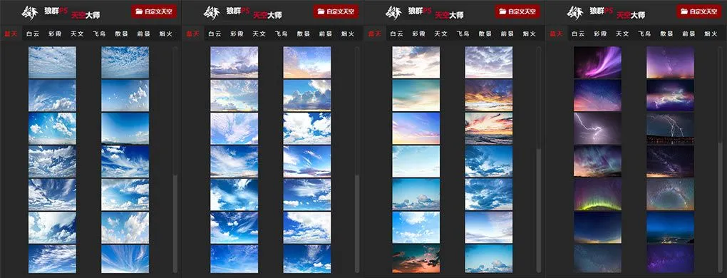 一键换天空中文PS插件|狼群ps-天空大师PS扩展插件 无需抠图自动换天空