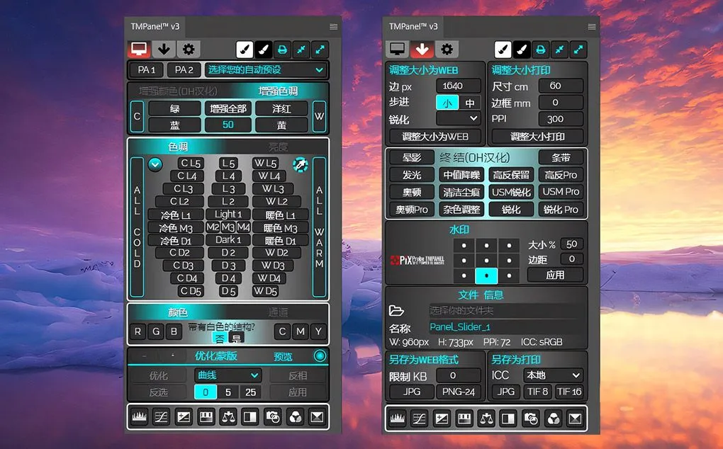 TMPanel V3 是一款PS高级调色插件面板,旨在加快和改善工作流程。TMPanel V3帮助大家在Photoshop中轻松实现色彩校正和光影调整。