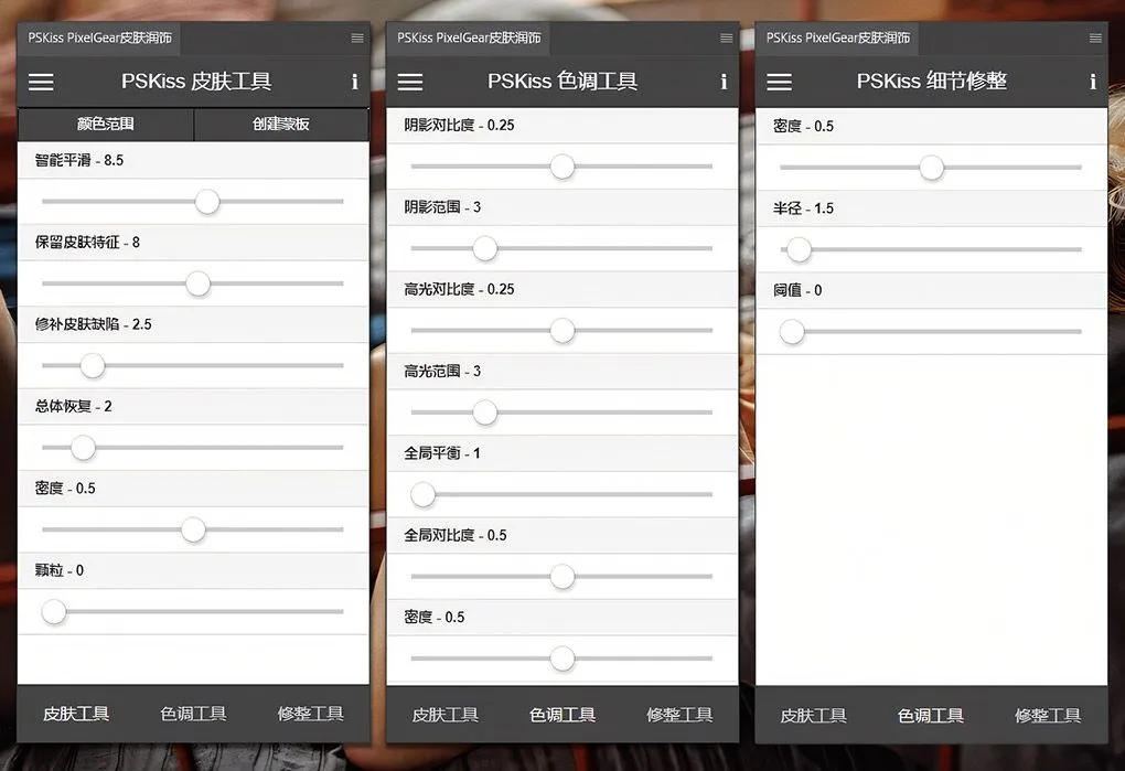 高效人像磨皮润肤PS拓展插件滤镜 PSKiss PixelGear汉化版