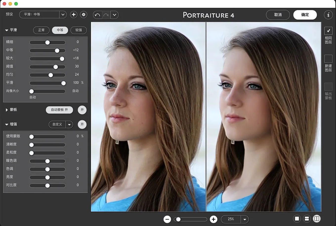 PS磨皮美肤调色影楼自动批量磨皮滤镜中文插件Imagenomic Portraiture 4.0.33 for PS/LR MAC汉化版