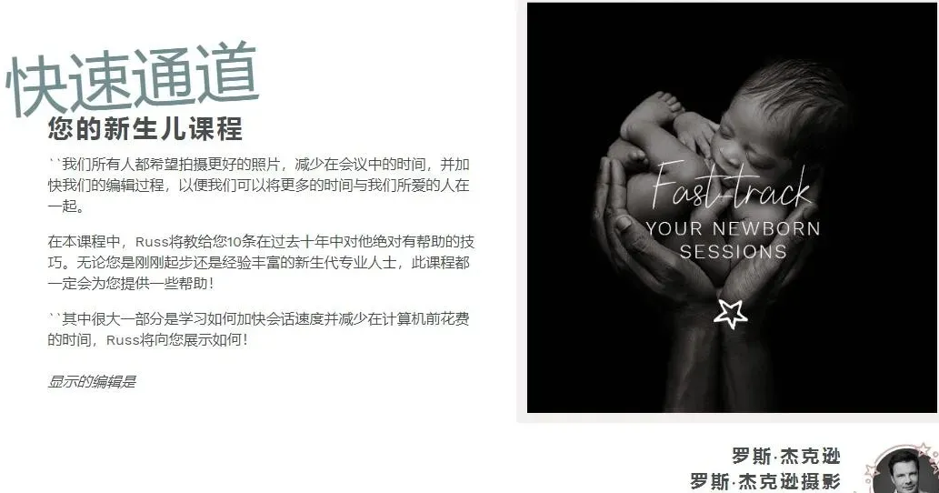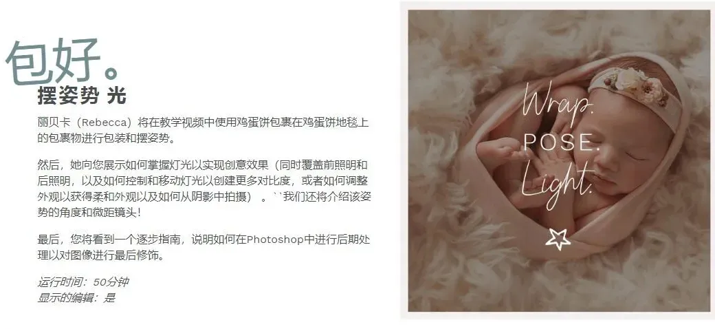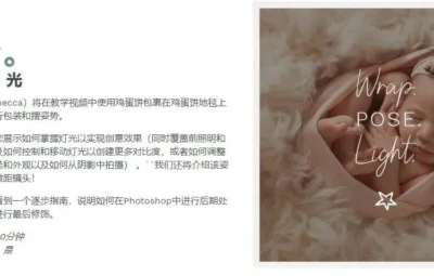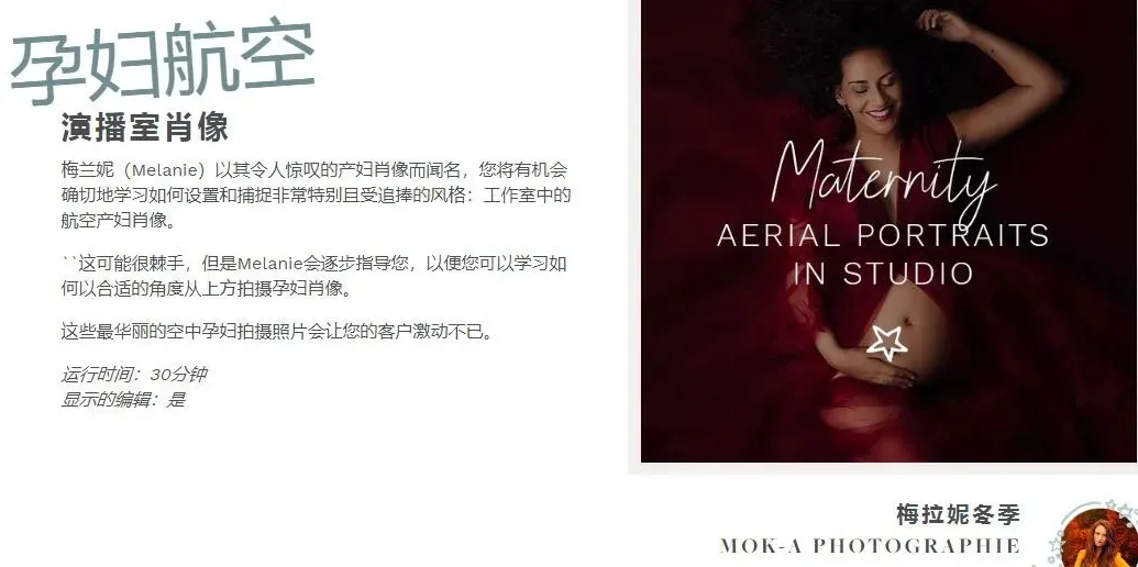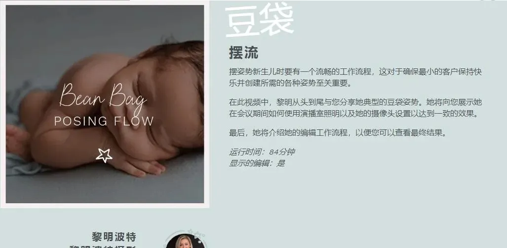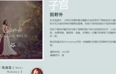 本摄影教程是关于26位the Milky Way摄影师孕妇新生儿摆姿包裹营销合集教程 中文字幕,大小:33GB ,MP4高清视频格式,作者:the Milky Way,共26章节,语言:英文+中文字幕。