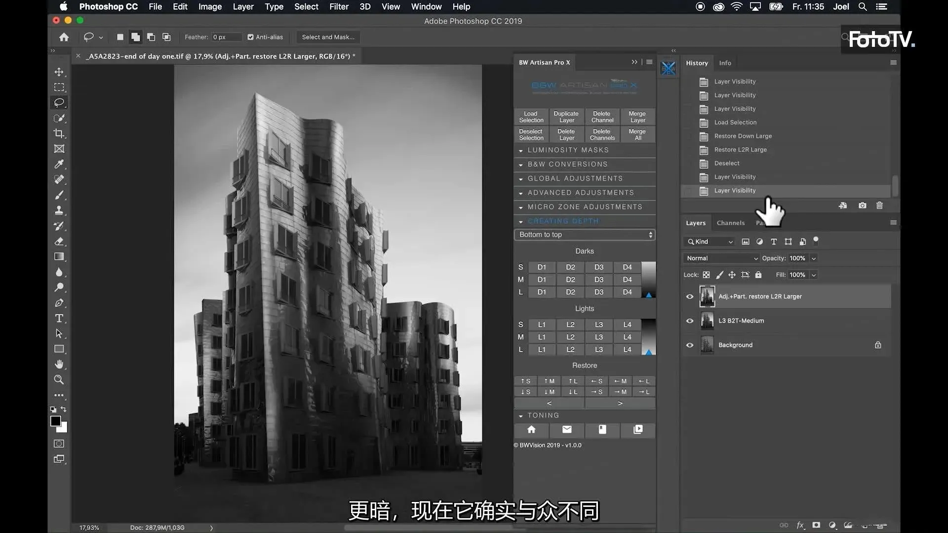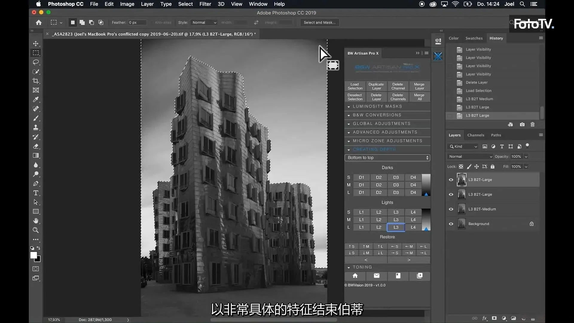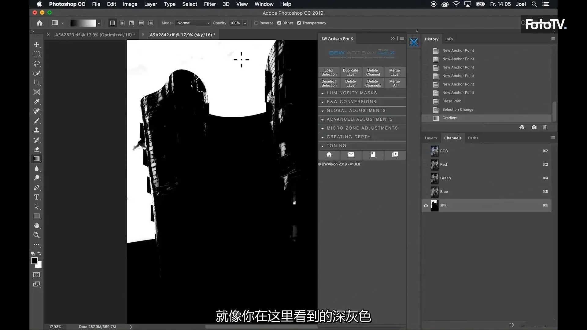 与重新定义的工作流程密切相关的另一项最新进展是开发了名为B&W Artisan Pro X的B&W编辑面板,以支持这种新的B&W处理方法。