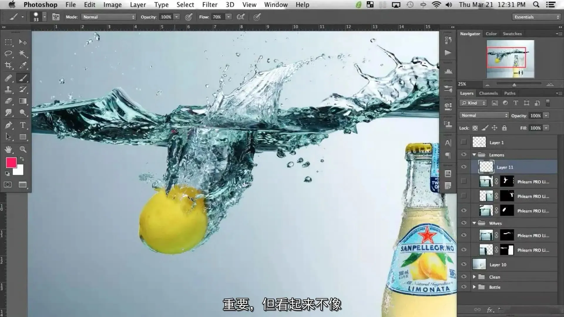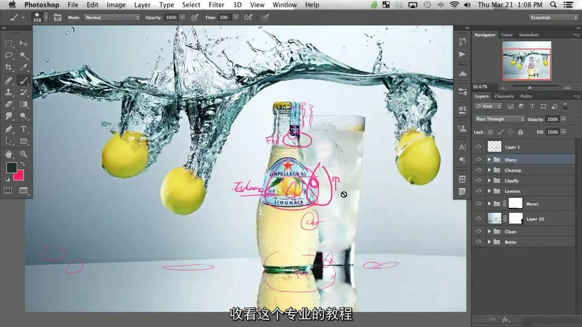 在这个2.5小时的视频教程中,您将学到一些令人惊奇的技巧,可以“装点”饮料瓶进行拍摄,并获得有关如何点亮它的基本知识。然后,亚伦花了几个小时来教授技巧,以合成和修饰这个超酷的图像。他介绍了液化工具,遮罩,克隆和修复画笔工具,以及如何使用曲线来加亮选择性颜色,仅举几例!