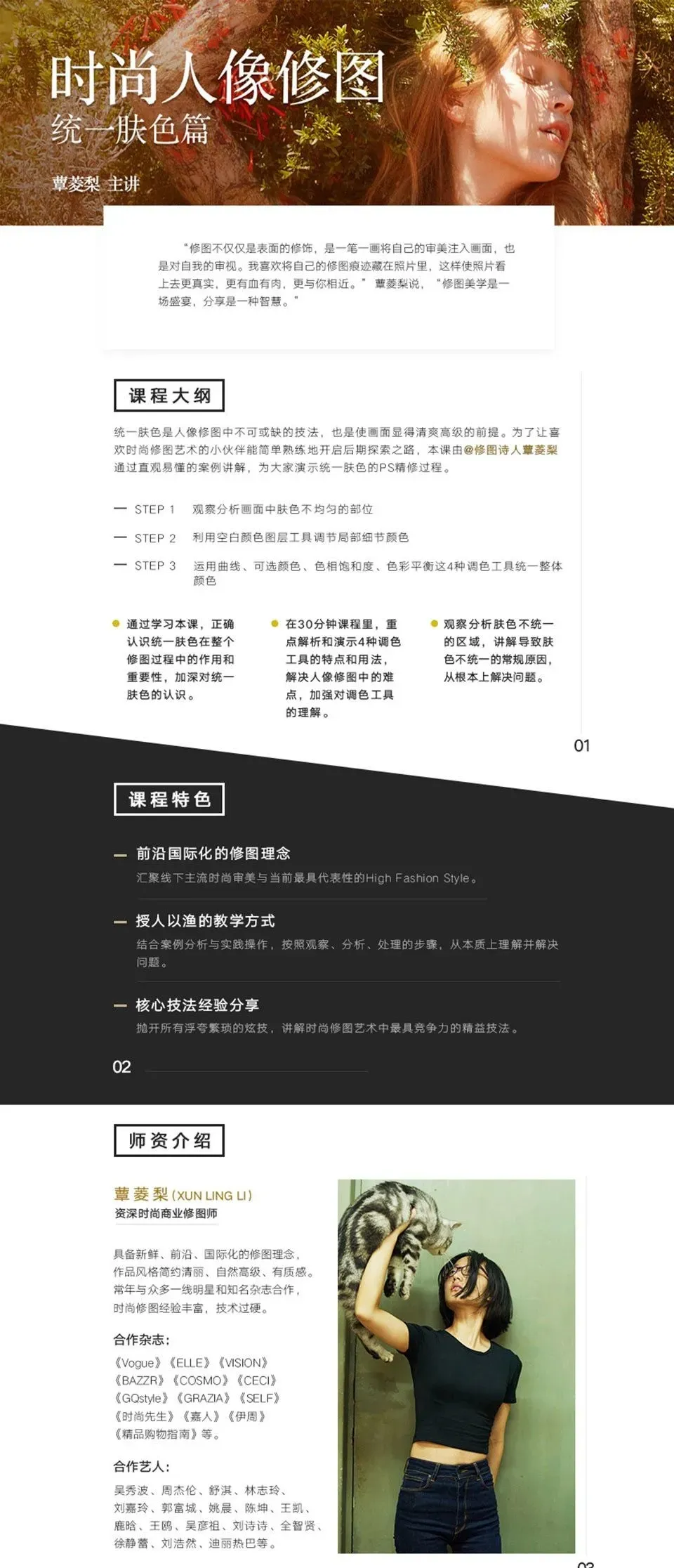 本视频教程是关于时尚人像修图统一肤色摄影后期修图调色中文视频教程,大小:260 MB ,时长:30分钟,MP4高清视频格式,作者:蕈菱梨,共2章节,语言:中文。