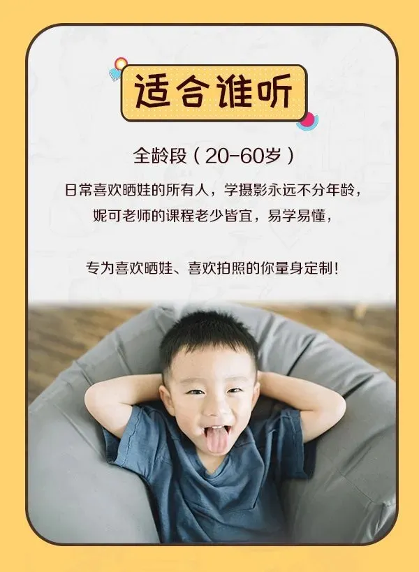 妮可老师是实战派儿童摄影师,曾担任MIMI影像馆摄影师,从零基础小白到踏上职业摄影师之路仅花了半年时间。