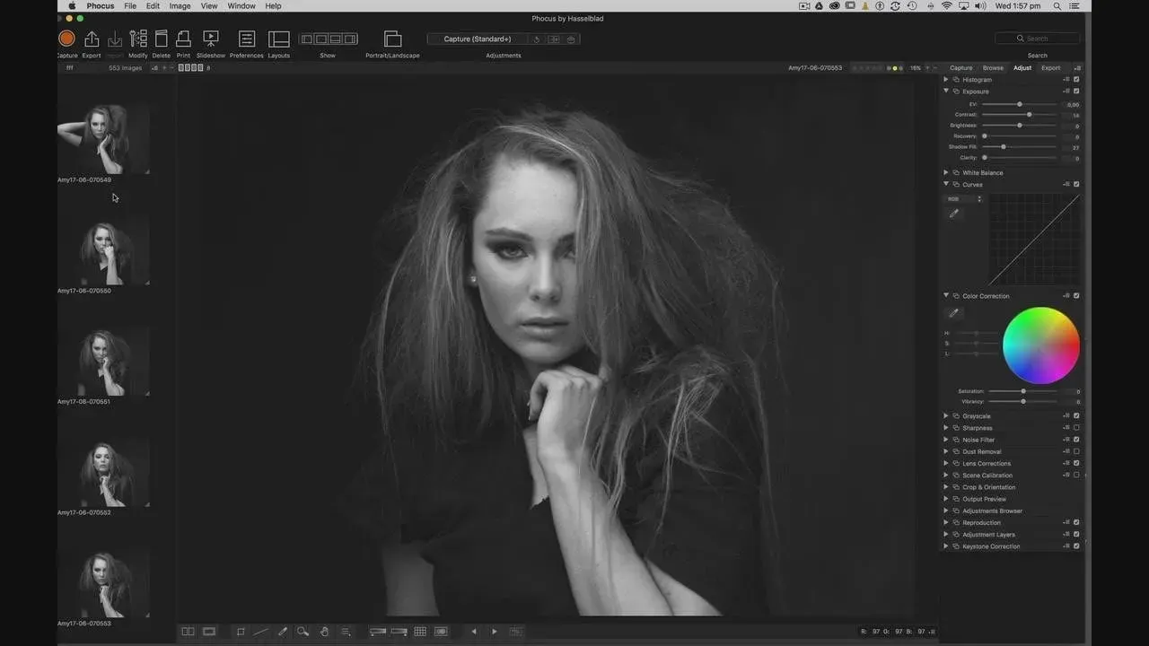 观看 Peter 与模特Amy合作拍摄4 次不同的照片,展示他如何摆好模特的姿势,以及 他为获得他想要的照片而给他们的 方向。
