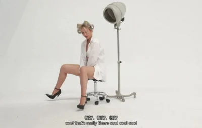 当彼得继续训练洛蒂的时候,她第三次来到了研究中心,她有一个想法,她想用头发上的滚轴来拍摄。这引发了彼得已经用了一段时间的老式吹风机,所以他们两个人合作,创造了一点新的东西!