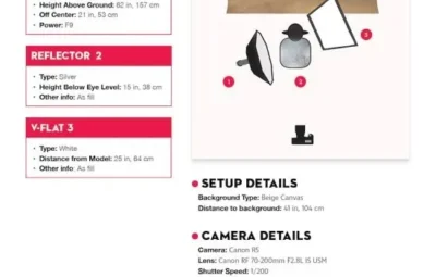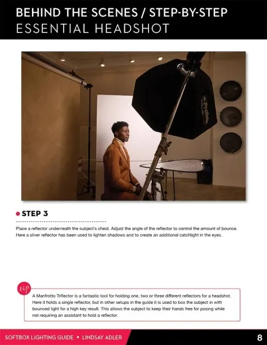 本指南中的许多设置仅需要一个灯光和1 个调节器,但我们并不止于此。事实上,我们将研究使用一个、两个或三个柔光箱可以实现什么效果。对于每个设置,您都会获得重新创建外观所需的一切,包括光的强度、光的距离、修饰符、幕后花絮、分步说明等等!
