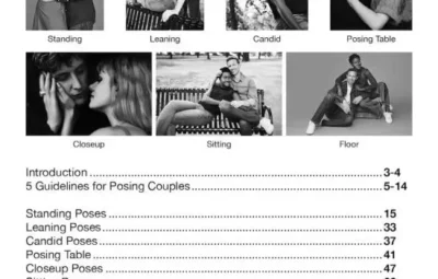 您将找到关于坐姿、站立、倾斜、坦率时刻等的参考,无论是在外景还是在工作室。在情侣摆姿势指南的帮助下,为您的客户提供迄今为止最好的照片。