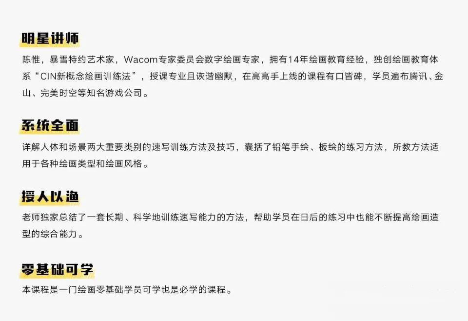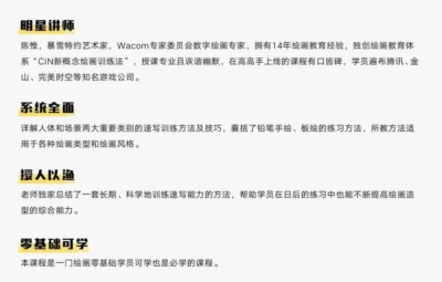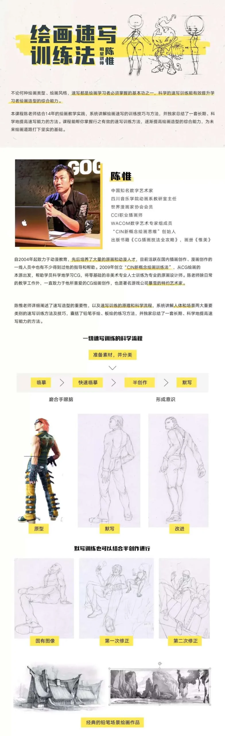 本绘画教程是关于陈惟 绘画速写训练法中文视频教程 10堂绘画速写训练法,时长:2小时43分钟,大小:440 MB ,高清视频格式,作者:陈惟,共10章节,语言:中文。