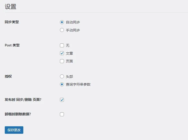 - 第六步(A站发布B站自动同步,无需干预!)(必设置)这个插件最主要的自动同步的功能,那就是设置,这里按图勾选即可,我选的是自动同步,同步的类型,我只有文章,所以选择的是文章,最后点保存,通过这样的设置之后,你在发布文章的时候,该插件会把你发布的文章同步到你指定的网站,全程无需手动干预。