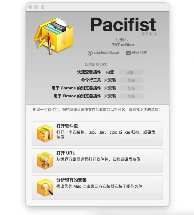 Pacifist 是一款功能强大专业的 Mac OS X .pkg解包工具,除了可以提取pkg中的文件外,还支持.dmg磁盘映像以及 .zip、.tar、.tar.gz、.tar.bz2、.xar存档的查看及提取文件。在安装之前,Pacifist还可以验证现有安装并查找丢失或更改的文件*,并且Pacifist还可以检查系统中安装的内核扩展,以查看安装了哪些安装程序以及该安装程序是由Apple还是第三方制作的。