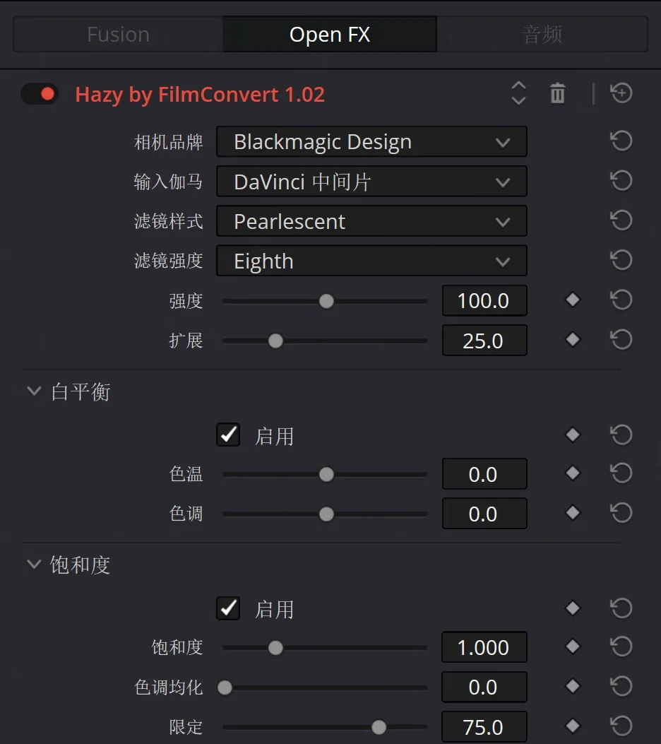 - 用 Hazy 打造复古外观:朦胧效果会为您的素材添加微妙的光晕,有助于降低数码拍摄带来的锐度和对比度。这种光晕会让您的素材看起来更柔和、更梦幻,就像胶片拍摄时的感觉一样。选择较小的滤镜尺寸会产生更紧密集中在明亮光源周围的光晕效果。选择较大的滤镜尺寸会使整个图像的光晕更柔和。