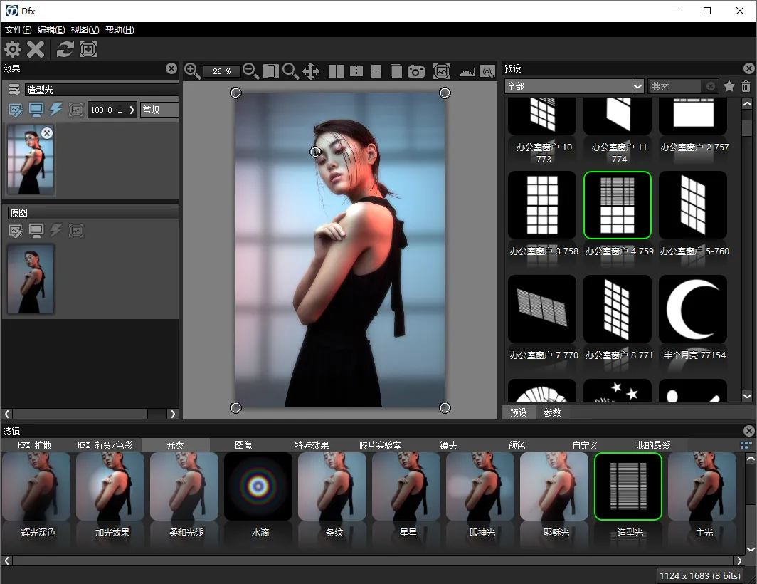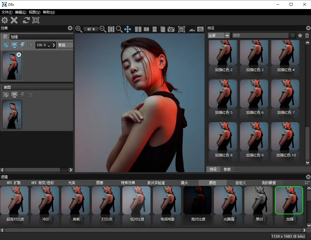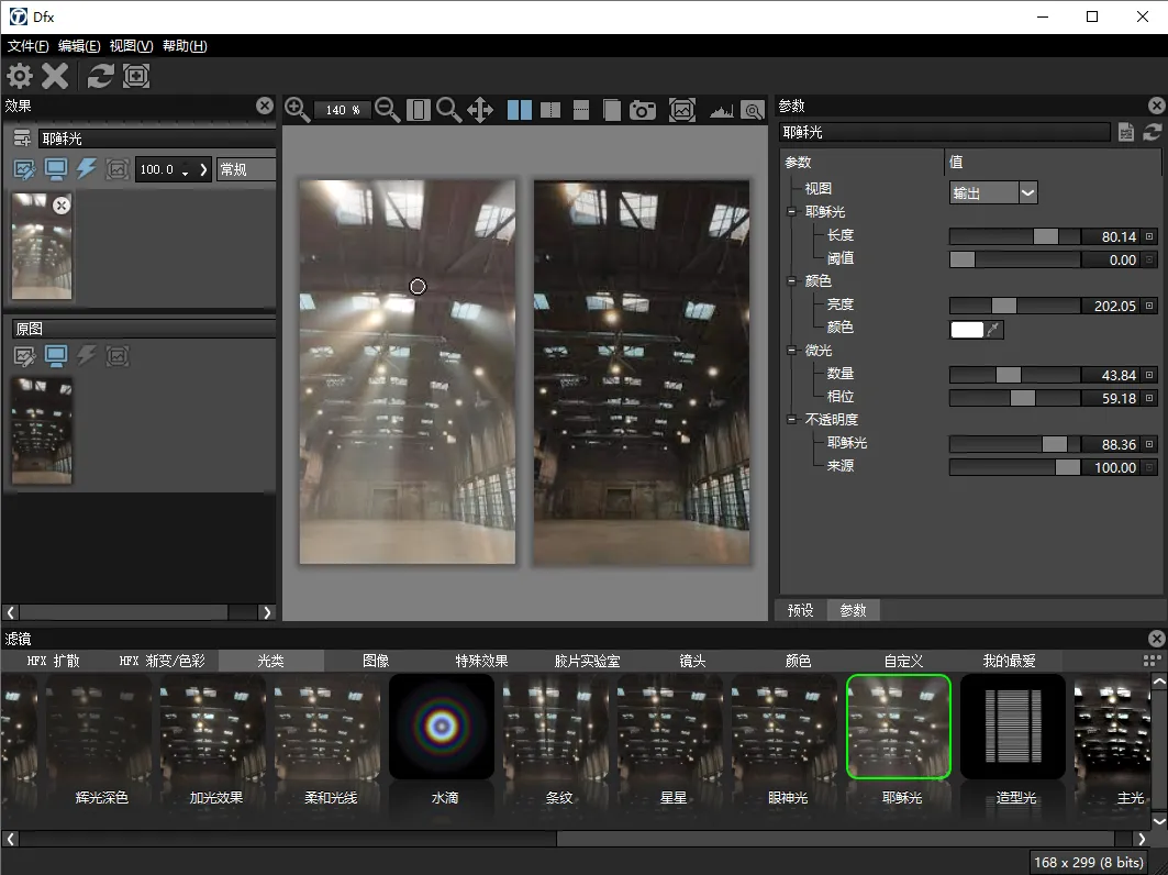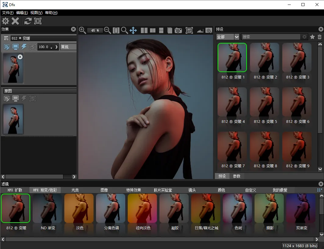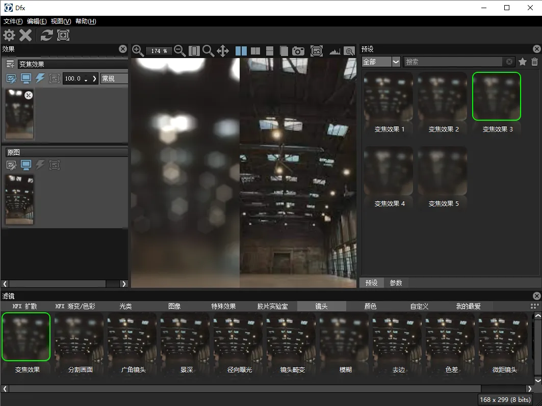 这些滤镜包括:HFX扩散、HFX渐变/色彩、光类、图像、特殊效果、胶片实验室、镜头、颜色等,也可以自定义效果,也可以一键收藏喜欢的滤镜效果,方便下次使用。