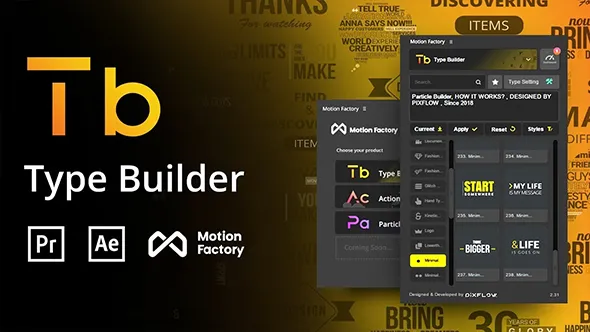 Motion Factory v2.42 包括Particle Builder粒子特效、ActionFX Builder二维流体、Type Builder文字动画、HiTech HUD Builder高科技元素、Glitch Builder信号破损等,全部专为After Effects 2D动画设计,使用可帮助用户快速创建出各种惊艳的视频特效,轻松快速地创建高品质的视觉效果,为您提供制作非凡的动画图形视频所需的所有工具。