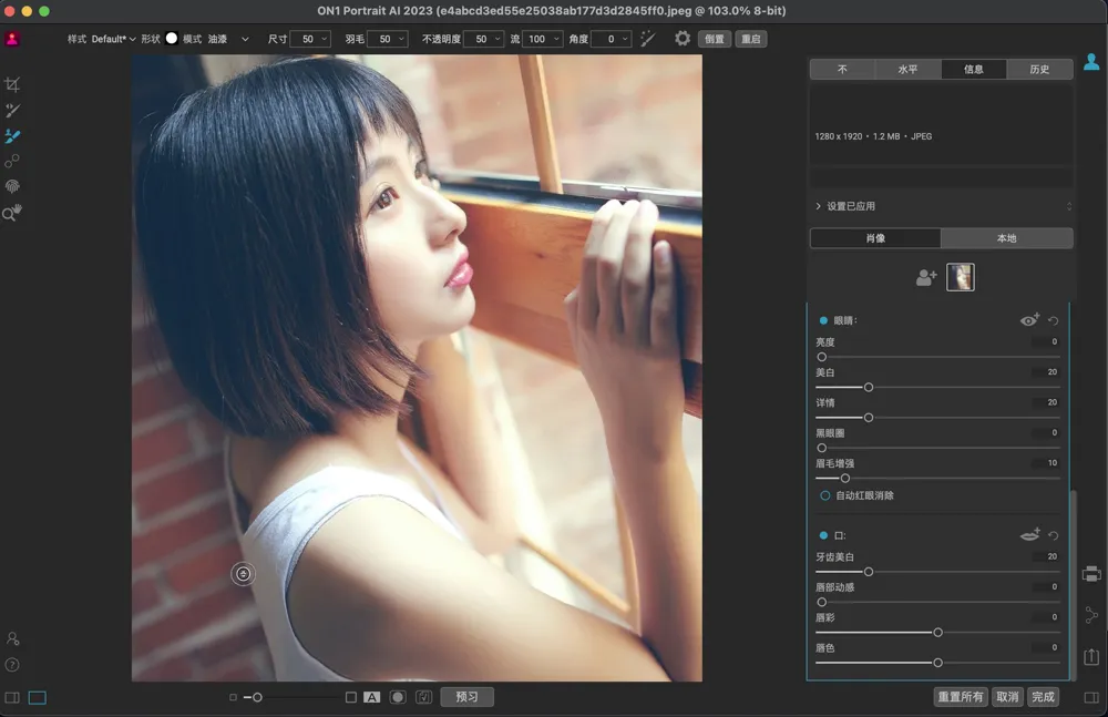 - 增强眼睛:眼睛会被自动检测和增强。白色可以变亮,虹膜可以锐化。