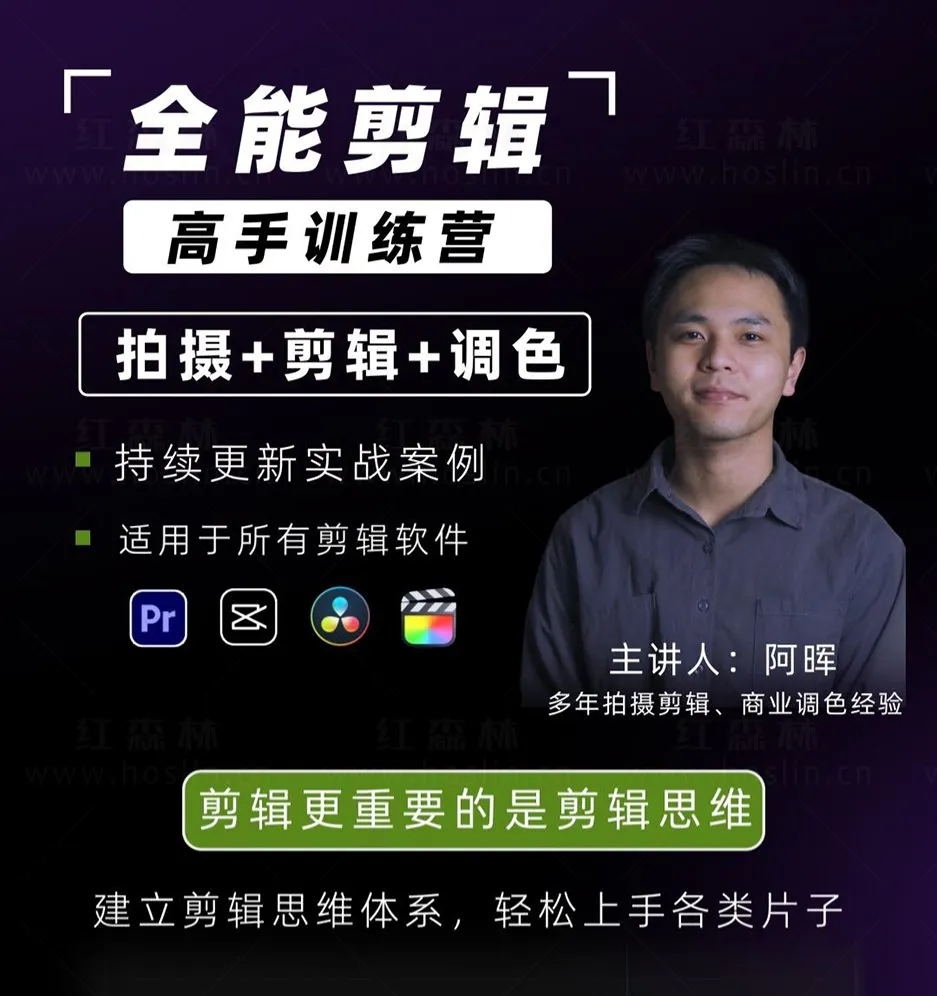 阿晖全能剪辑高手训练营 剪辑思维+达芬奇调色+拍摄技巧一站教学