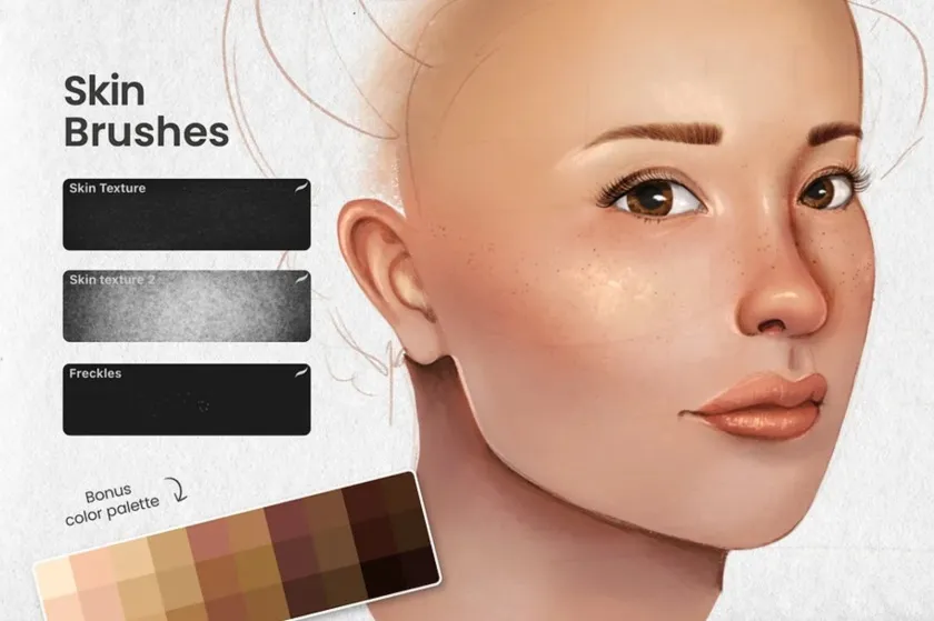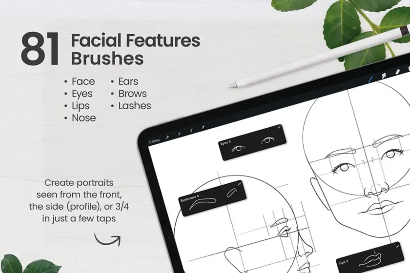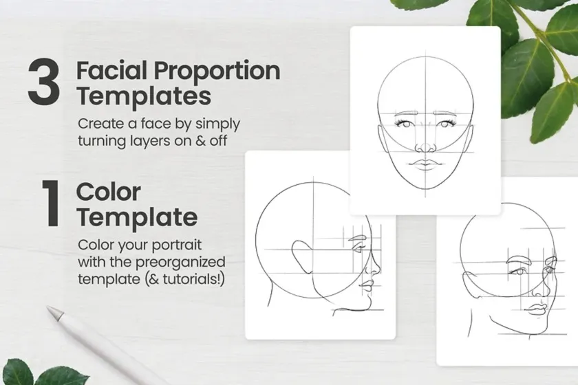 如果您不熟悉肖像画,还可以观看素材包中提供的分步深入视频教程,以学习如何像专家一样画脸。如果您是专业人士,则可以简化创作过程并节省宝贵的创作时间。