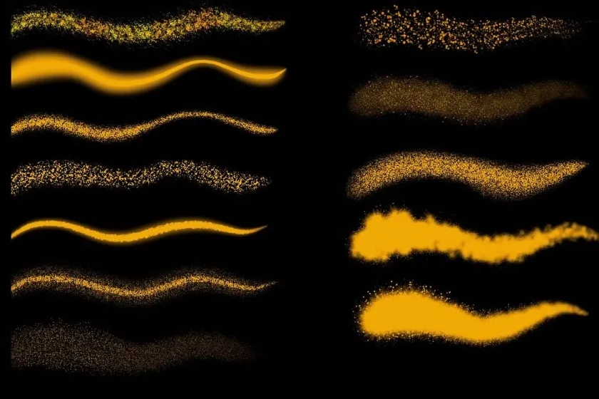 金色粒子金屑闪光效果手绘插画创作Procreate笔刷 Glitter Procreate Brushes