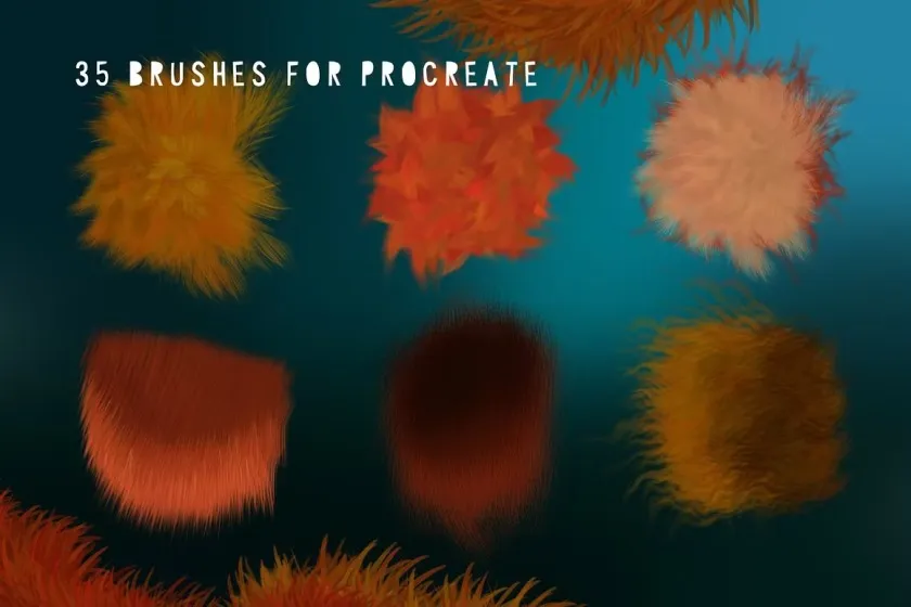 35支逼真毛茸茸动物鸟兽皮毛插画Procreate笔刷 Animal Fur 2