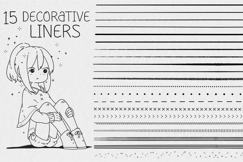使用这些画笔让你的插图更加大气!这款尺寸完美的细眼线刷套装将帮助您绘制酷炫的涂鸦和详细的插图。该套装中有 70 多种刷子,您一定会喜欢它们。