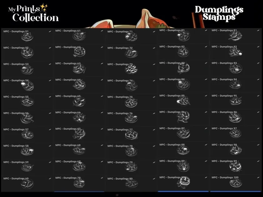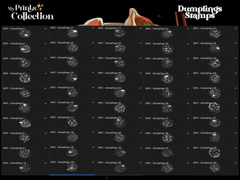 - +100 个高品质 Procreate 印章(.brushset 文件):每张印章都经过精心制作,为您的艺术作品提供清晰详细的饺子插图。