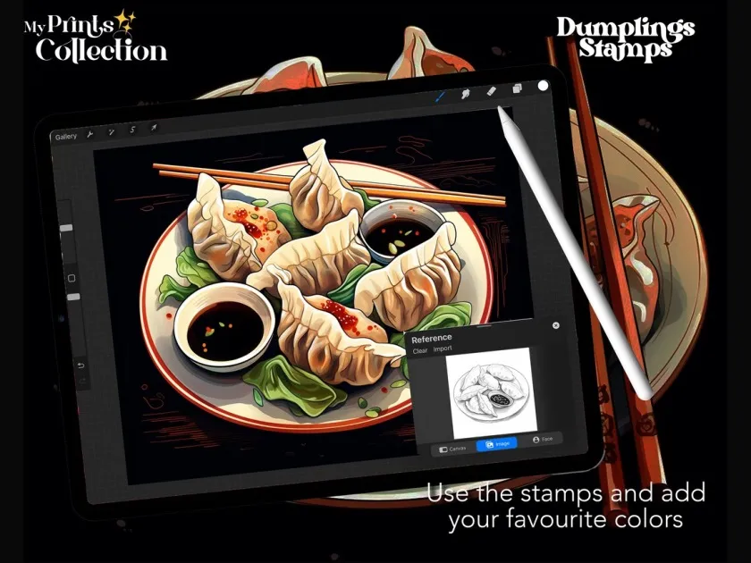 使用我们的 Procreate Dumplings 食品画笔,用饺子的美味为您的数字艺术增添色彩!将这些令人垂涎欲滴的美食的美味魅力融入您的艺术作品中。