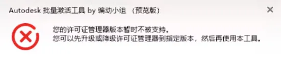 使用Autodesk系列软件批量激活工具时,如果出现许可证管理器版本不被支持。