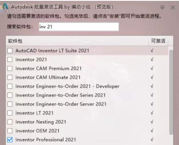 此时,2020及以上软件包的“可激活”显示为“√”,您可以正常勾选激活。