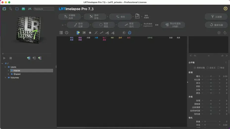 LRTimelapse Pro v7.3.0是专业的延时摄影编辑和创建工具,配合使用 Adobe CameraRAW、Adobe Lightroom 和 Adobe After Effects 等实现平衡曝光不一致(去除闪烁等现象)、关键帧参数自动过渡功能。