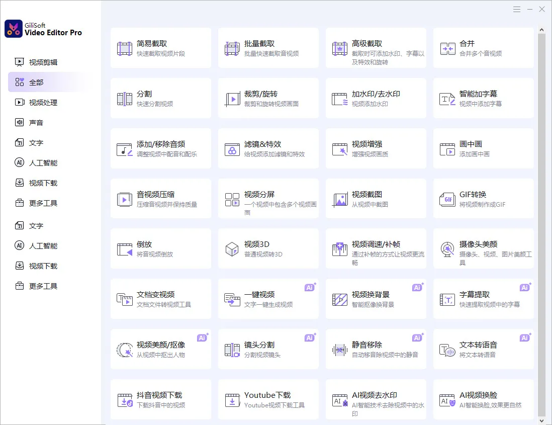 GiliSoft Video Editor Pro是一款功能全面的视频编辑软件,集剪切、合并、裁剪、特效添加、水印、字幕制作、格式转换、网络视频下载等多种功能于一体。支持几乎所有主流视频格式,操作界面友好,适合初学者和有一定编辑需求的用户。它还提供加密、提取音频、制作画中画、调速等实用工具,帮助用户轻松制作专业级视频内容。