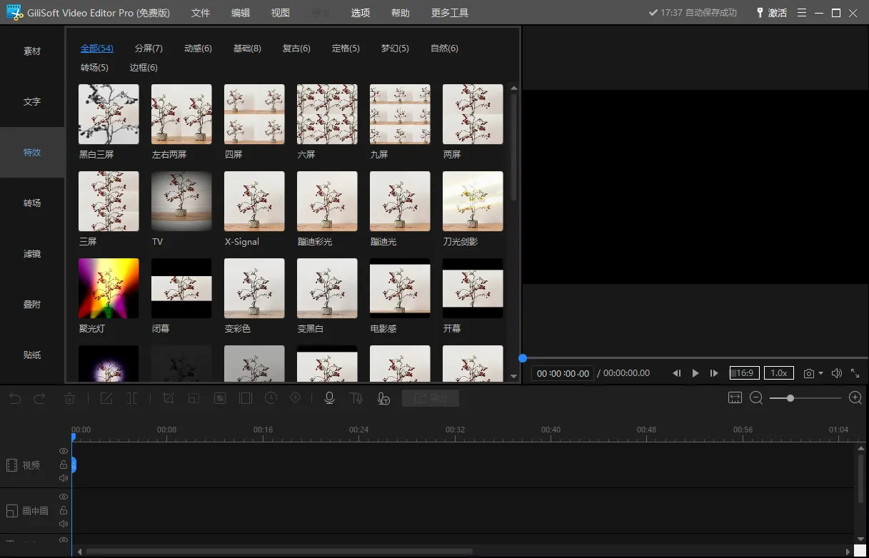 - 视频滤镜和特效:Gilisoft Video Editor Pro 拥有丰富的视频编辑滤镜和特效合集,助您打造完美剪辑。为了营造专属的氛围,您可以应用艺术效果、添加对比度滤镜,甚至更改颜色参数。无论您如何操作,效果都将令人惊艳!