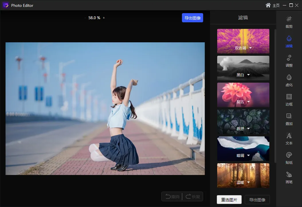 - 撤消和重做功能:不用担心出错。软件提供无限次撤消和重做选项,让您轻松进行编辑,直至达到理想效果。