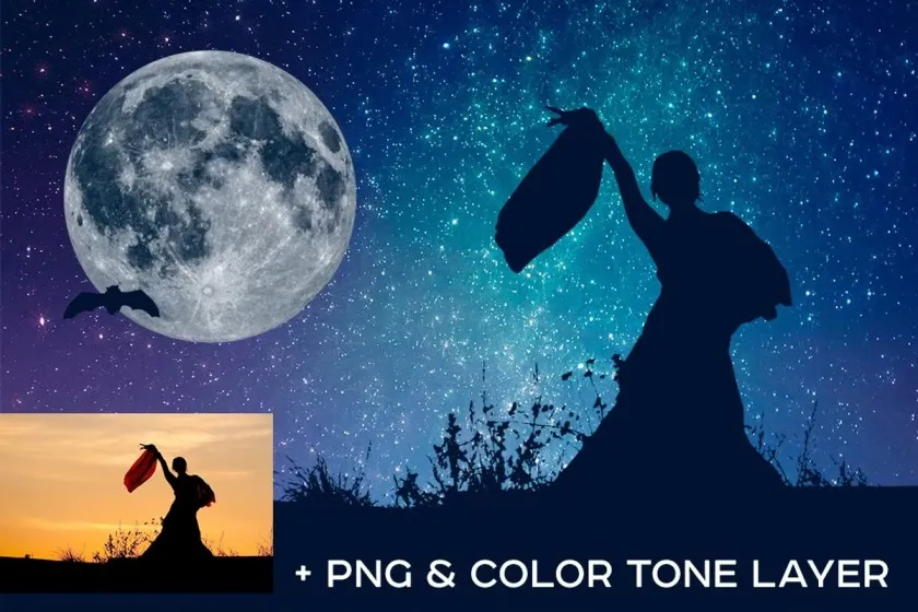 高清浩瀚星空夜空剪影叠加合成素材 附PS动作 Night Sky Silhouette Actions
