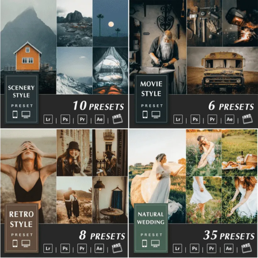 它们适用于各种图像和视频,这些包包括桌面和移动预设,这意味着您可以将它们安装在智能手机、平板电脑和计算机上。