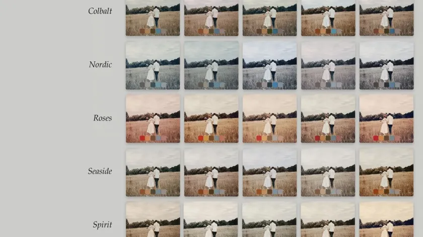 这些预设的颜色分级以柔和的蓝色、粘土红色、橄榄绿色、芥末黄色为特色。这个调色板非常适合让您的照片具有怀旧和情感的外观。