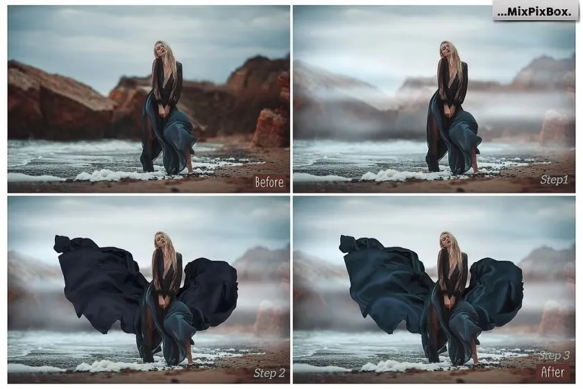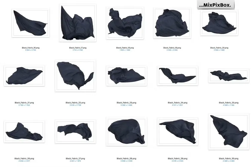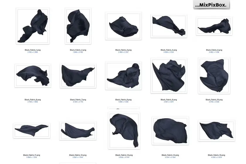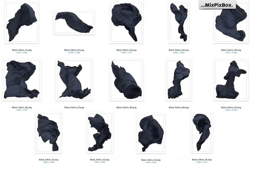 44款影楼婚纱大片蓝黑色丝绸裙摆拖尾婚纱飘纱PNG素材 Black Fabric Photo Overlays
