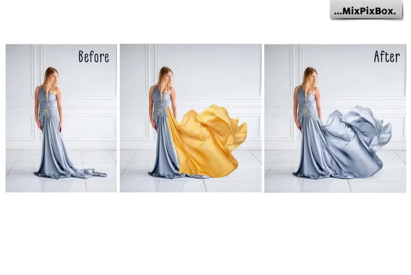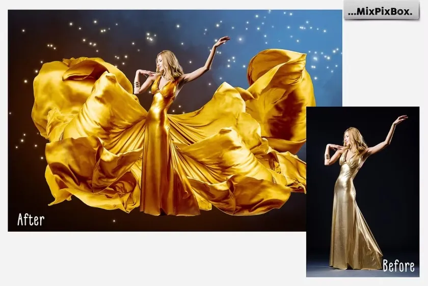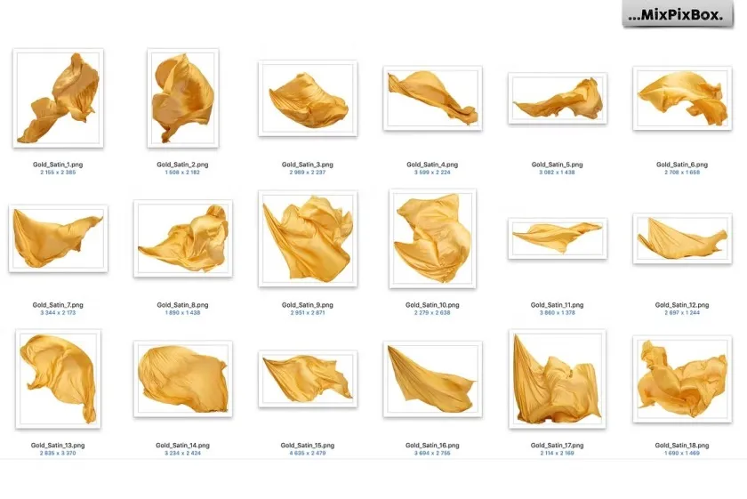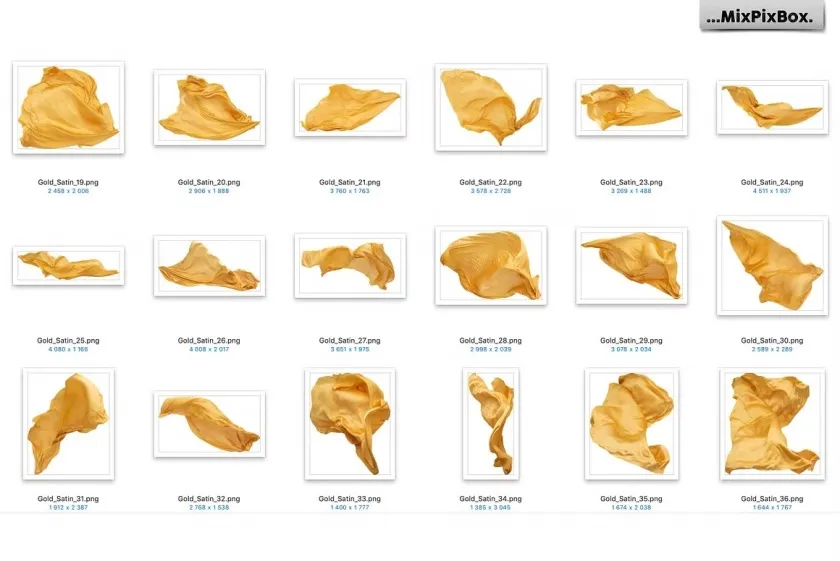 44款影楼婚纱大片金色丝绸裙摆拖尾婚纱飘纱PNG素材 Gold Satin Photo Overlays