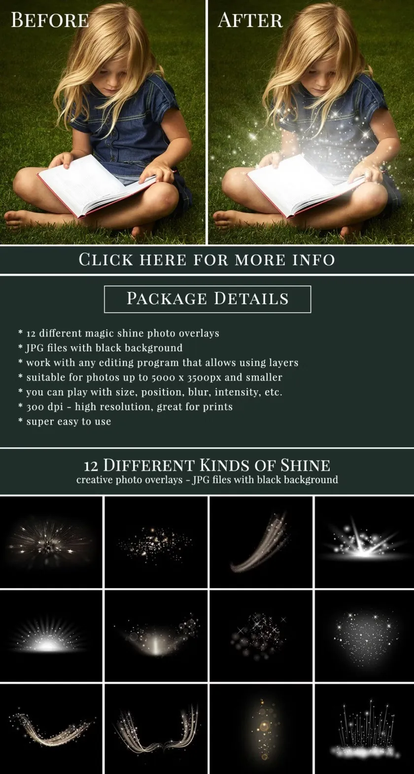 Magic Book photo overlays work in any editing software that allows using layers (Photoshop CS & CC, Photoshop Elements, Zoner, Gimp & etc.)