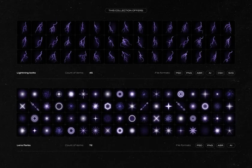 如果您正在等待灵感的闪电来袭,请不要再观望,因为我自豪地展示了一个引人注目的闪电和镜头光晕包。 这 117 个矢量照明效果的精彩集合将照亮您的创造力,并帮助您为您的数字艺术作品添加最后的润色!