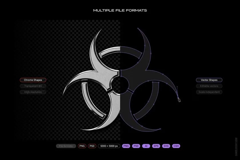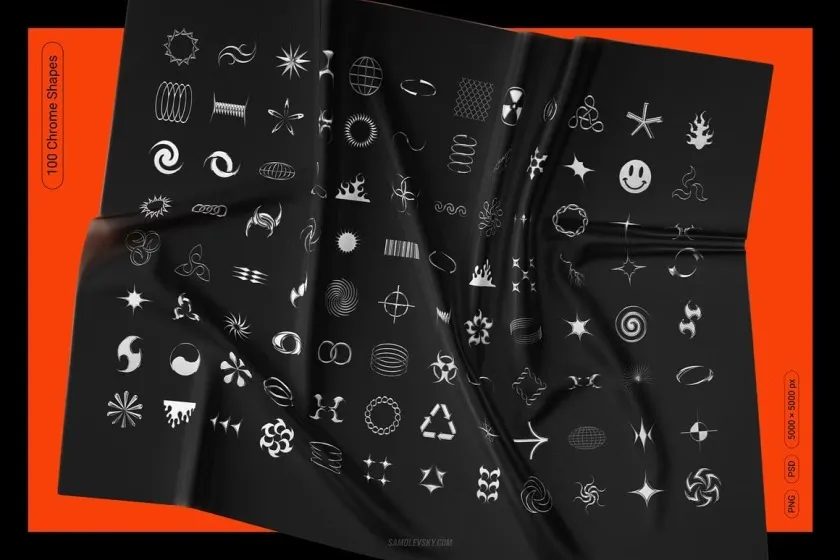 使用这个时尚的镀铬和矢量抽象形状系列,让您的设计工具箱更上一层楼! 这些图形资源不仅使用起来很有趣,而且还能为您节省数小时的时间。