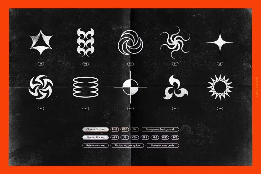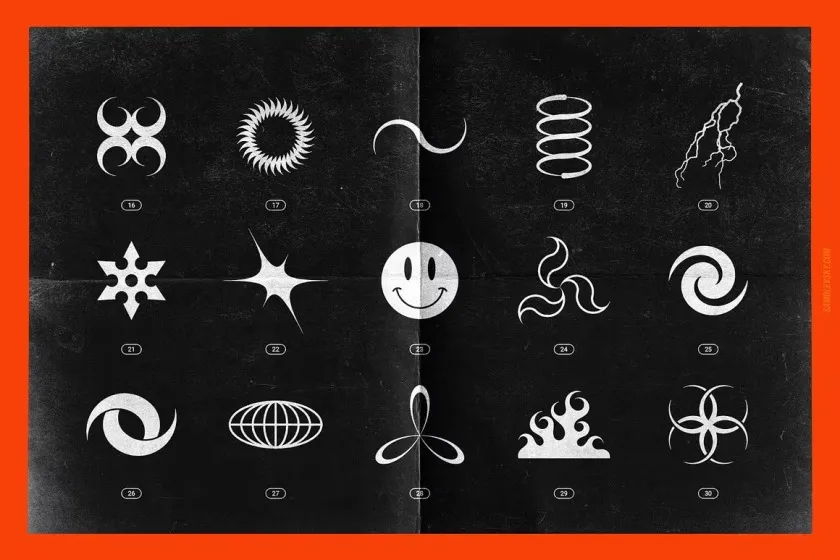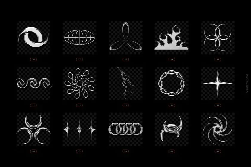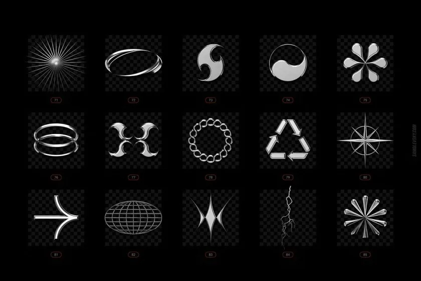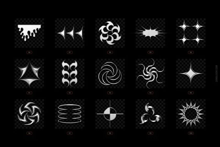 受 2000 年代叛逆的狂热视觉美学的启发,这个Chrome 和 Vector 抽象形状包包含 200 多种时尚设计元素,随时可以投入到您的创意项目中。