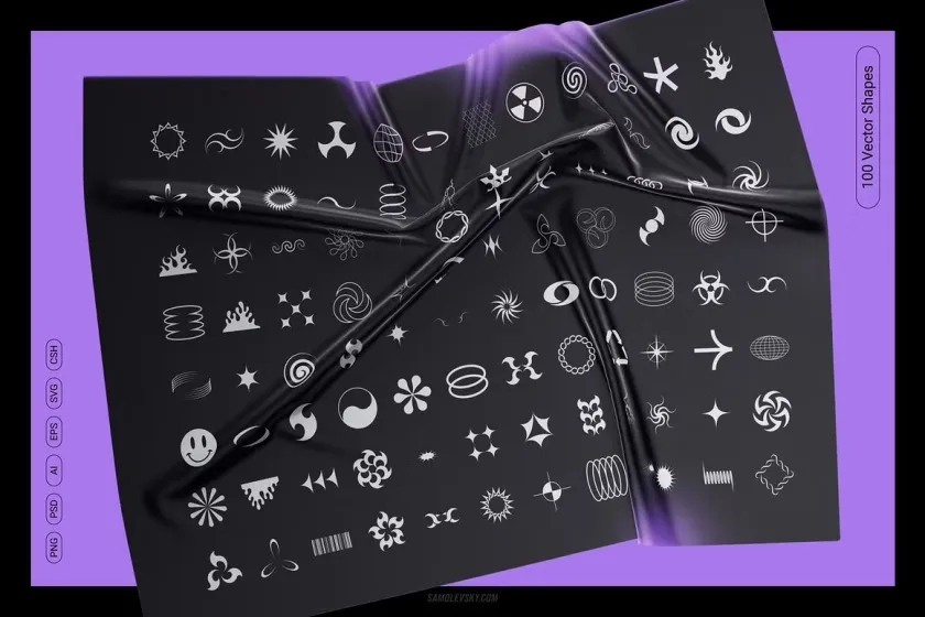 PSD 文件– 100 个组织良好且易于使用的 Adobe Photoshop 文件,带有矢量形状图层,可随时放入您的设计中。