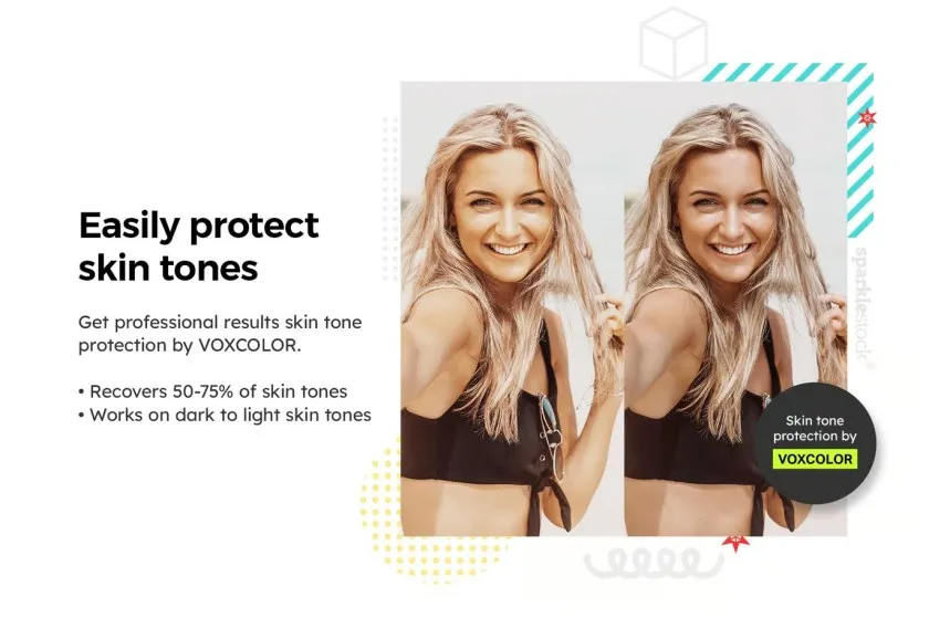 功能 使用 SparkleStock 预设提升您的工作流程,该预设具有 VOXCOLOR 算法,可带来专业效果。
